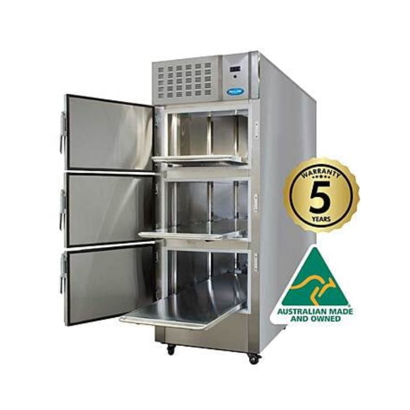 This Australian made and designed, fully stainless steel exterior and interior morgue refrigerators is capable of storing three bodies in individual compartments.